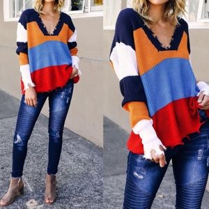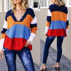 NIKKI Distressed Knit Sweater - MULTICOLOR