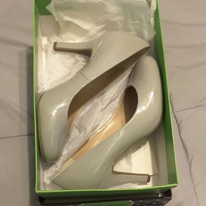New grey pumps. Only tried around the house. Too big! Ugggh! 3 1/2in heel height. No damage. In original box.