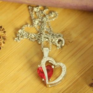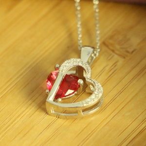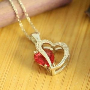925 Sterling Silver 2Hearts red cubic zirconia