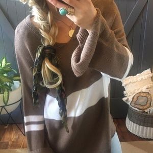 Last One! Brown Soft Stripe V-Neck Sweater Tunic