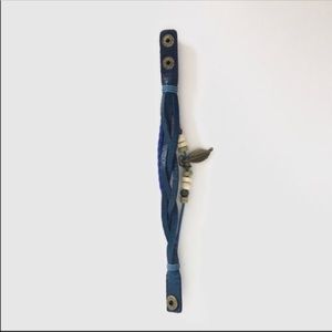 Boho Chic Feather Charm Bracelet , Blue with antiqued bronze hardware and wooden beads, snap closure, 8 1/4" bands, Smoke free home