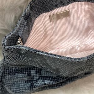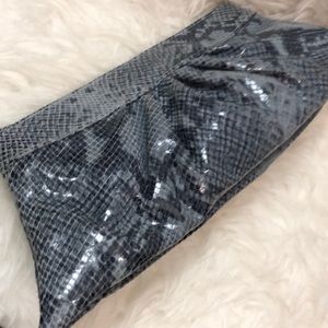 Lauren Merkin Designer Bag in Luxurious Python Embossed Leather Clutch! Features a Suede Feel with Pleated Style Exterior! Greyish Shade with Hexagonal Frame Opening! Beautiful for a Night Out and Beloved by Many Celebrities!