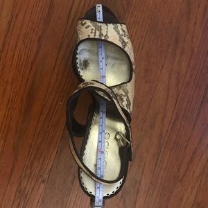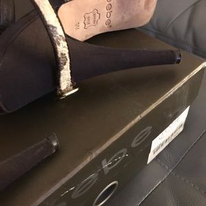 Beautiful snake skin print w/ brown, silky material on heel. Super sexy, perfect for date/ladies night, or even for a little seduction at home!