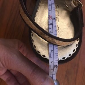 Ankle strap. Very little wear, & heels are still in great condition (see image). Always kept in box for preservation & ships w/ box incl. Slight wear in back (see image) but print & buckle (most of the shoe) in great condition! Orig price: $129 (see box)