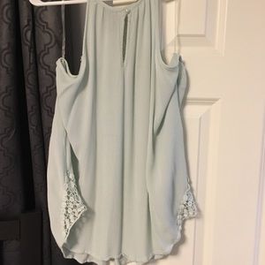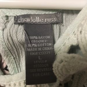 Charlotte Russe crochet top top with crochet side detailing. Beautiful green-blue color looks super cute and loose look. Worn once. Size L