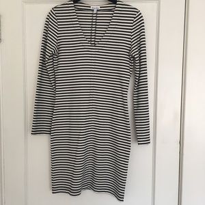 Super soft and comfortable thick cotton blend. Black and white stripes. Long sleeves. V neck. Minimalistic design. Very gently used. No rips or stains. In great condition!