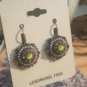 Versitle lever back earrings are lead and nickel free and feature shades of greens, blues, silver and bronze