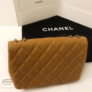 This is a yellow ocre Chanel bag, but it is more on the brown side. I bought this purse in the Chanel store in Monaco, Europe. This is an authentic purse and is in PERFECT CONDITION!!!. I am not sure if I am supposed to show the whole authentication number because someone could replicate it.