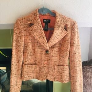 This absolutely beautiful jacket is in pristine excellent condition and ready for you to add to your wardrobe. The tweed fabric has a mix of salmon, beige and brown which is a lovely and unique combination.