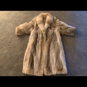 Stunning full length Natural Coyote Coat. Fully lined. 3 eye hook closures hidden within the fur. Excellent, lovingly used condition. Properly stored and cleaned annually. Small mark on lining (pictured). Should come out when cleaned.