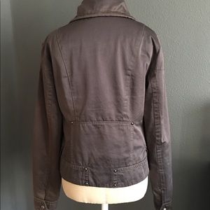 Loaded with features, this jacket has an edgy cargo / aviator style with silver zippers and buttoms, fitted seaming, funnel neck w/ drawstring, pockets and silver-tone studs. Pretty dark slate gray with a tiny bit of sheen finish. Worn a couple of times, EUC no flaws. By Monoreno, boutique purchase. Size large. Measurements provided on request. Smoke free seller. No trades please.