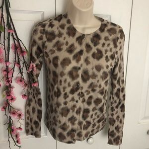 LOFT Merino Wool Small Petite Cardigan Leopard