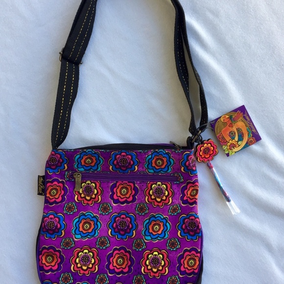 Laurel Burch Light of your life Crossbody Boho Bohemian Style Bag Black Strap Colorful Feminine Bag Embellished