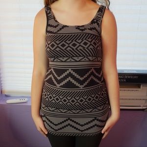 VS Pink black and grey tank/tunic length hits mid-thigh. No rips, tears, or stains, overall in good condition.