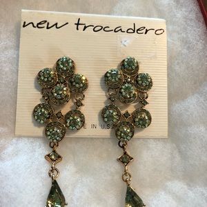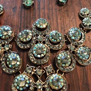 Trocadero gorgeous statement crystal necklace and matching clip on earrings in peridot
