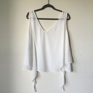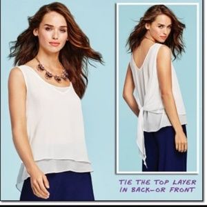 By mark. for Avon. Flowy White top with ties in front. Very flattering. Can be worn tied in the front or back.