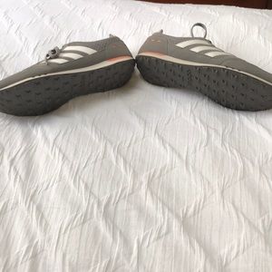 These are really comfortable! Comfort footbed style. In almost new condition. Barely worn. Gray, white and peachy orange. Super cute!😊