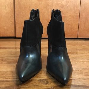Schutz Pia black leather bootie size 10 New without box. Combination leather and mesh upper, Sexy pointed toe. Black zipper closure 4” Heel