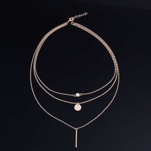 4/$30 Layered Crystal, Coin, & Bar Necklace