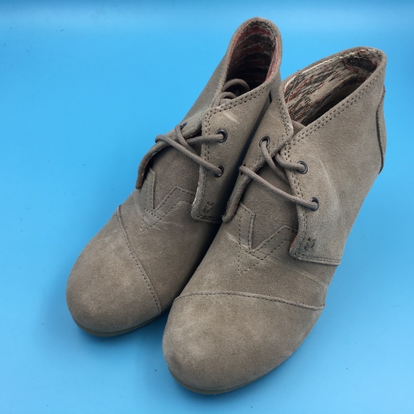 - You're looking at Suede Wedge Booties by Toms.