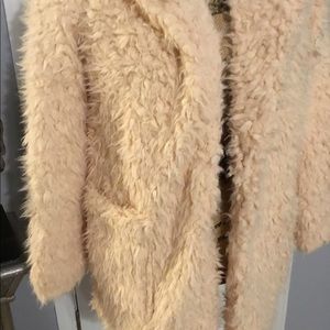 Long Sleeve open front Shaggy Faux Fur Coat with front pockets. Nice quality, super soft and lined. Material: Polyester. Size Small, Medium and Large. New in packaging. Boutique Item. Color as Shown: Buff Pink.