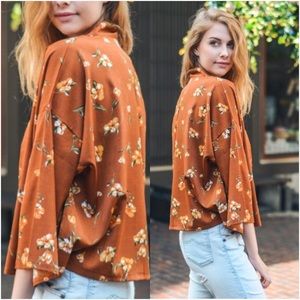 Easy, breezy beautiful floral kimono cardi. I love wearing this little piece all year ‘round. So versatile & gorgeous. Add to any outfit to add a boho chic flare. Lightweight (NOT see through) polyester in rich camel & ivory floral pattern. One size fits 2-12. Also available in black in separate listing