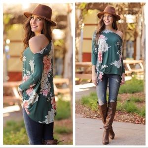 ✨LAST ONE✨Hunter Green Floral Tie Front Tunic