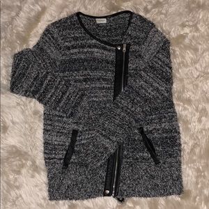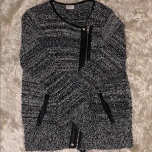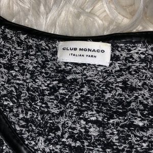 Host Pick!! ππππ½ Club Monaco - black & white sweater made of Italian yarn! Size small. Moto style look... zip up front (with snap) and two front pockets. Black leather look along zip and pockets. Just gorgeous and a great add to your Fall or Winter closet!