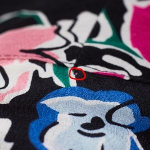 A couple of tiny holes made from tags -- The first one is located on the left shoulder next to the collar seam