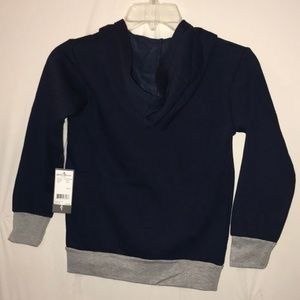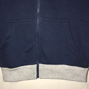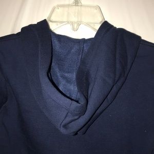 Nice navy blue hoodie with gray trim wrist and waist.