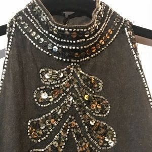 Black/charcoal acid wash, high neck tank. Beautiful silver bead/sequin detailing on front and around neck and arms. Good condition, worn 2x.