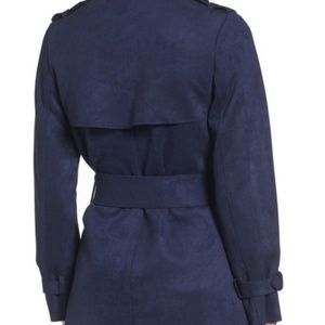 Navy blue faux suede belted trench coat. So chic and timeless!