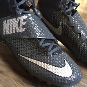 Black & Silver Nike Strike Pro cleats silver Nike Swoosh