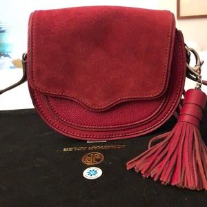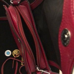 Super fun! Pebble leather with faux suede. Cute for shopping or casual night out. Holds an iPhone plus size phone, with some trim to spare for keys, cash, ID, and lipstick.