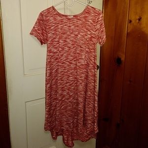Lularoe Carly, worn once. Red and white marled print. Perfect for holiday season. Wear as a dress or top. Size XS.