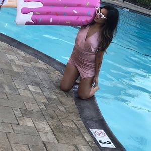 Ready to romp? This romper is soft and slinky. Deep v-neck front and a low back for a feminine touch. Criss cross straps are non adjustable for easy to slide on and off.
