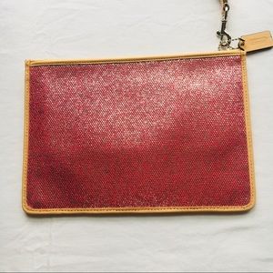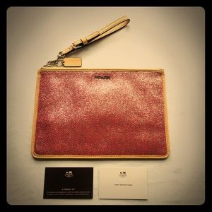 NWT Coach pink shimmer wristlet. Never worn.