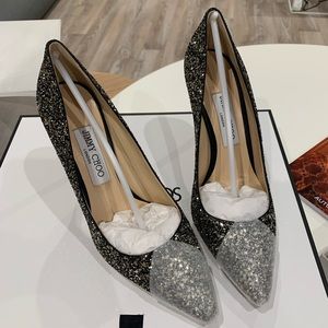 Sold!Jimmy Choo Romy 100 glitter gold mix