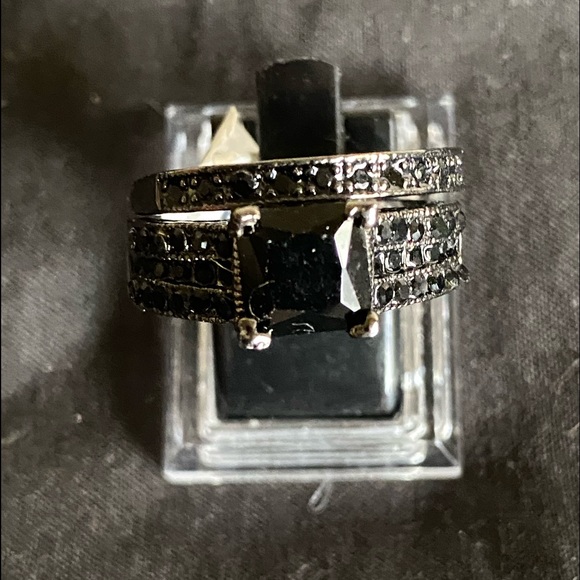 HP💎Black Sapphire 14KT Black Gold Filled Ring Set
