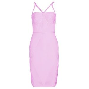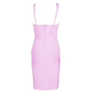 Sexy pink spaghetti strap bodycon bandage dress with cut out front.