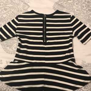 Size Xs. Women’s. GAP brand. Navy and white stripped thicker cotton top. Peplum bottom. Silver half zipper in back of shirt. Excellent condition. Worn once. Smoke free pet free home.