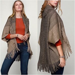 Absolutely in love with this stunning knit gradient cardi sweater shrug wrap with armholes & fringe trim. Slip this on & add instant boho chicness to your look. This listing is for red. Also available in Black or Taupe in separate listings.