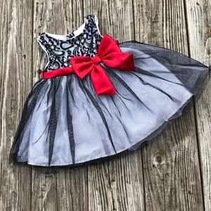 Beautiful 12m dress. Black, White, red bow and sparkly! Worn once for Christmas Eve. Brand is Youngland Baby.