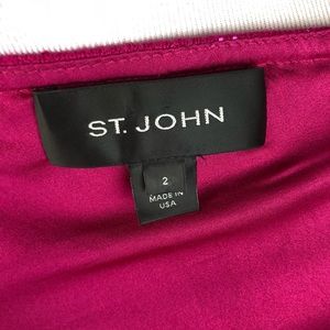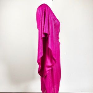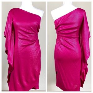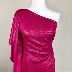 St John black label shimmer knit asymmetric Draped Shoulder Dress in fuchsia. Absolutely gorgeous. Size 2. I feel this could also fit a size easily due to stretch.