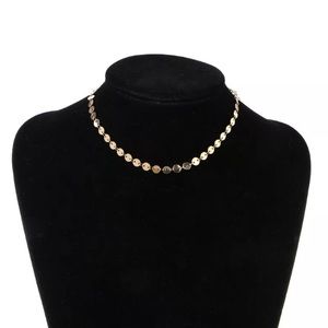 Delicate Sequin Circle Gold Tone Dainty Choker Necklace