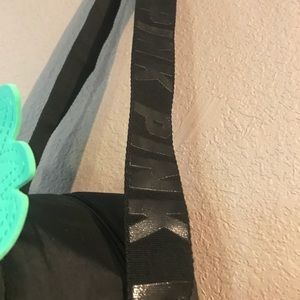 This bag is in good condition. There is no real wear to it and the inside is only a little dusty. Used only a couple times. It says PINK on the strap. Super cute!!