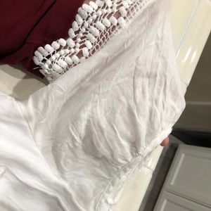 • Really cute all white romper with lace trim • adjustable straps with off the shoulder sleeve •