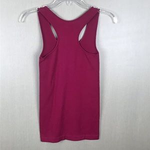 Lipstick maroon ribbed tank top with racer back, size one size. Approx measurements pit to pit is 11.5 inches unstretched and length is 24.5 inches from shoulder. Loc 044-11-18-1