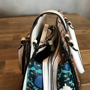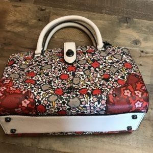 Coach Mercer With Dark Gunmetal/Chalk Yankee Floral printed Leather Satchel.