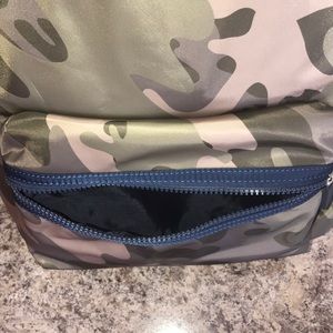 Camo and blue backpack